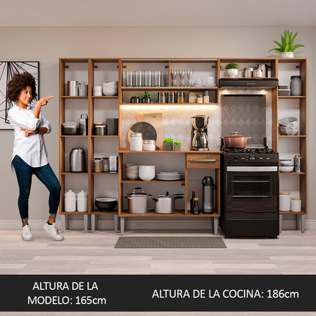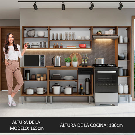 Combo completo de Cocina Madesa Emilly 261cm Marrón/Neg...
