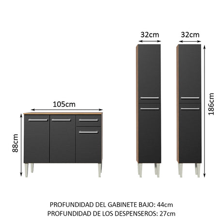 Combo de Cocina 169cm Marrón/Negro Emilly Free Madesa 0...