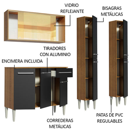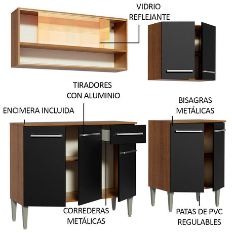 Combo de Cocina 169cm Marrón/Negro Emilly Winter Madesa...