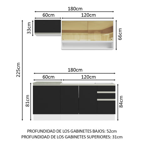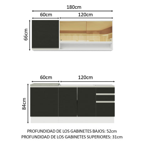 Combo de Cocina 180cm Madesa Glamy Blanco/Negro 08