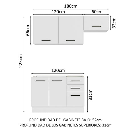 Combo de Cocina Compacta 180cm Agata Madesa 09 Blanco