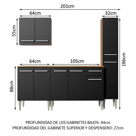 Combo de Cocina 201cm Marrón/Negro Emilly Sky Madesa 04