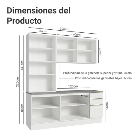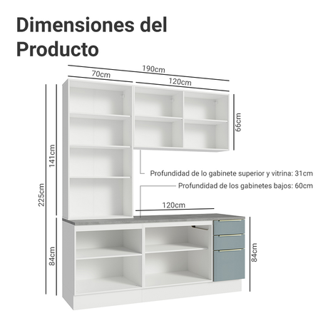 Combo de Cocina con Cristalero 190 cm Madesa Glamy BB 0...