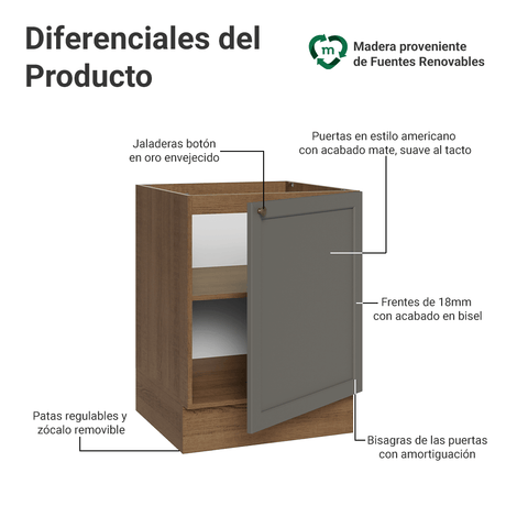 Bajo Mesada de Cocina 60 x 60 cm 1 Puerta (Sin Mesada) ...