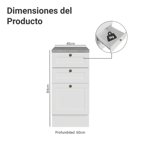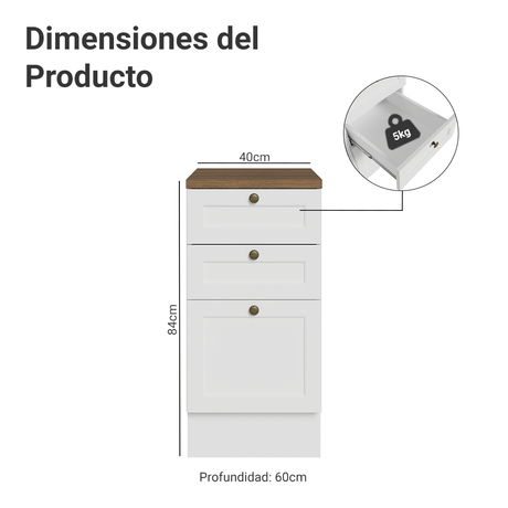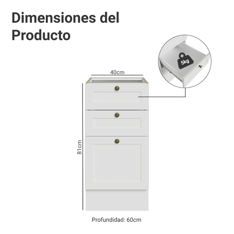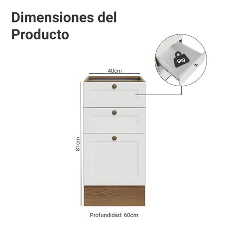Bajo Mesada de Cocina 40 x 60 cm 3 Cajones (Sin Mesada)...