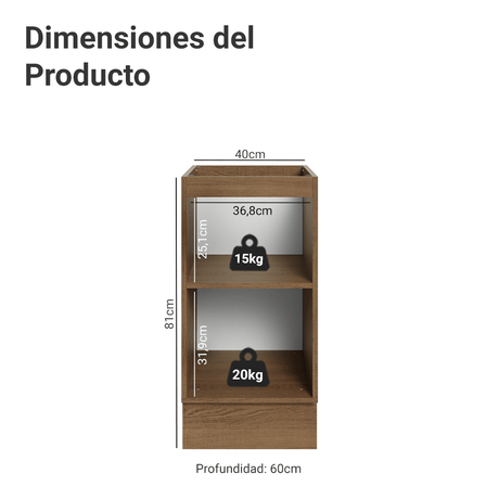 Bajo Mesada de Cocina 40 x 60 cm 1 Puerta (Sin Mesada) ...