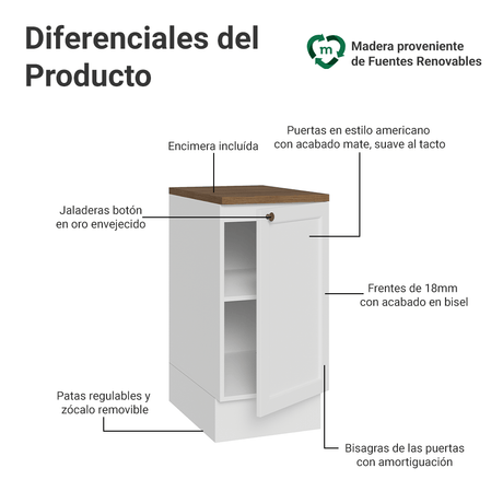 Bajo Mesada de Cocina 40 x 60 cm 1 Puerta (con Mesada) ...