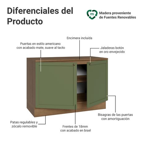 Bajo Mesada de Cocina 120 cm 2 Puertas Marrón/Verde Vik...