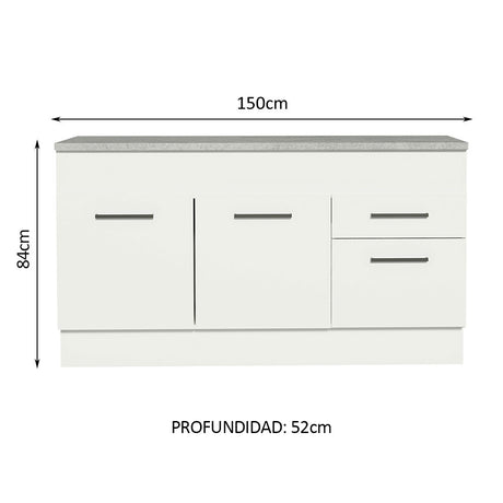 Bajo Mesada para Bacha 2 Puertas 2 Cajones 150cm (Con T...