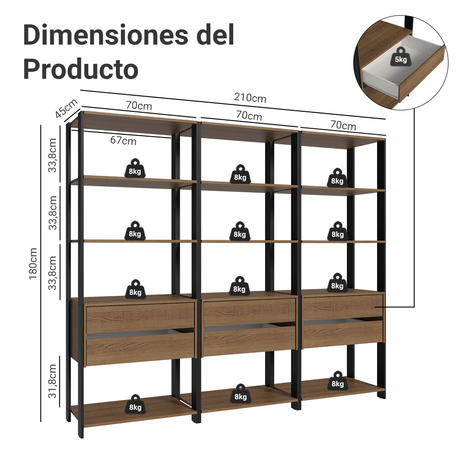 Si tenés un ambiente amplio, un kit de estanterías es perfecto para mantener todo en orden, ya sea en la oficina, el living o el dormitorio.