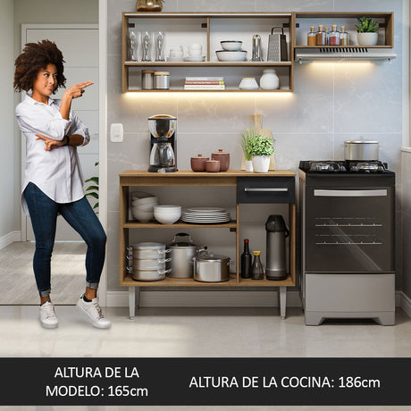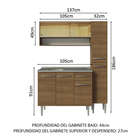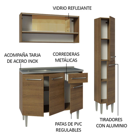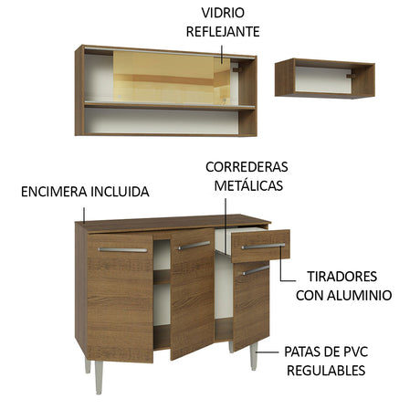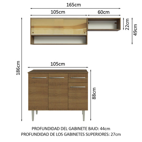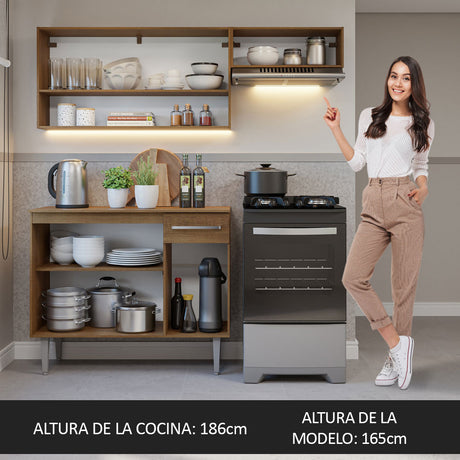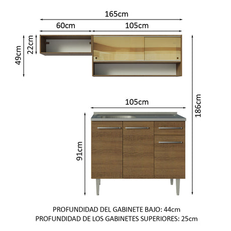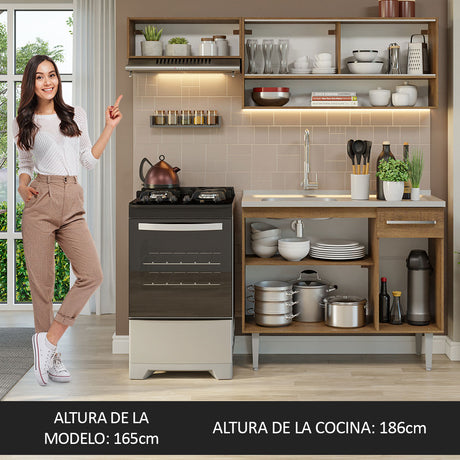 Combo de Cocina Compacta 165cm Marrón Emilly Madesa 02