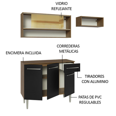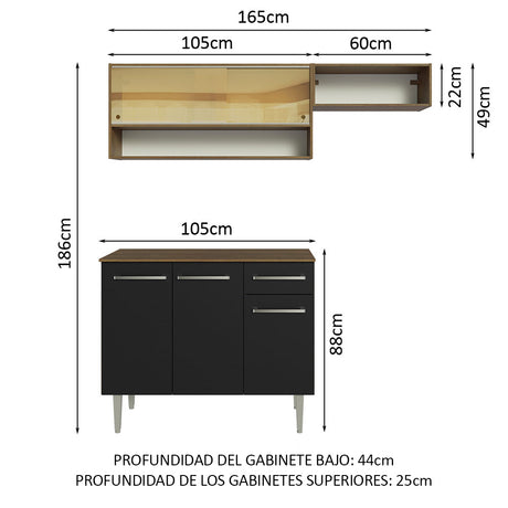 Combo de Cocina Compacta 165cm Marrón/Negro Emilly Made...