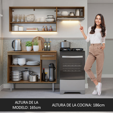 Combo de Cocina Compacta 165cm Marrón Emilly Madesa 07