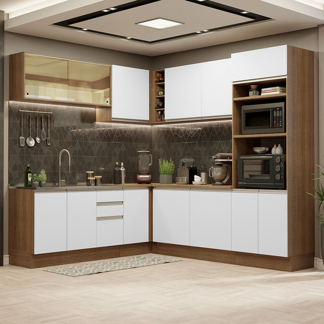Combo completo de Cocina Esquinera 459cm Glamy Madesa 01 Marrón/Blanco