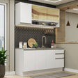 Al tratarse de una cocina modular, es posible organizar las piezas según las necesidades de su ambiente. Las patas son de PVC con regulación de altura y zócalo removible de fácil colocación.