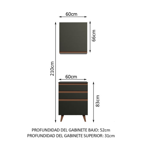 Kit Reims 60 cm con Gabinete Superior y Bajo con 3 Cajo...