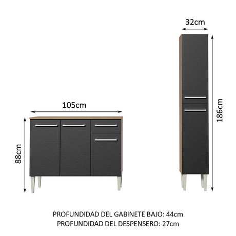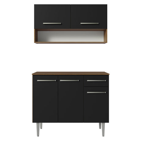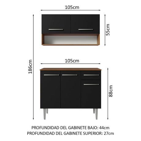 Combo de Cocina Emilly 105cm Con Alacena Marrón/Negro M...