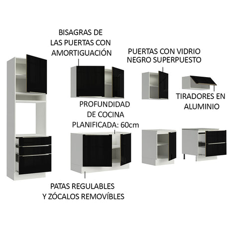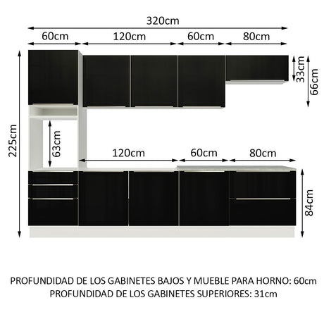 Combo completo de Cocina 320cm Blanco/Negro Lux Madesa ...