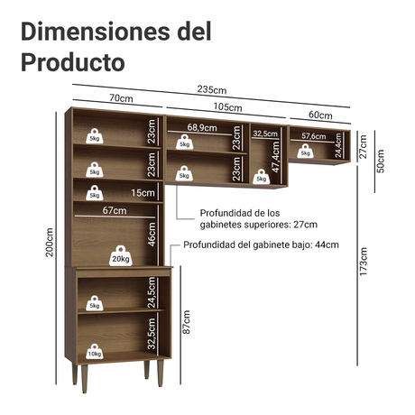 Cocina compacta 235cm Marrón Gourmet Madesa XC03
