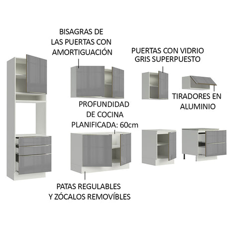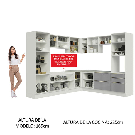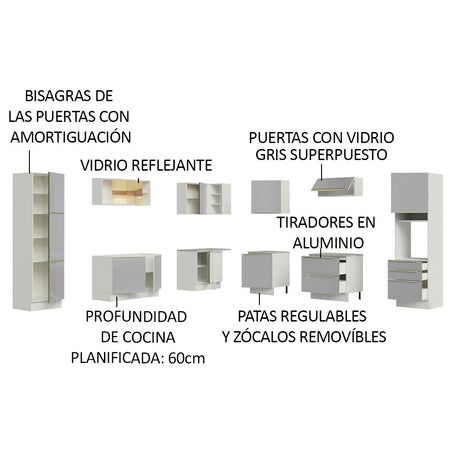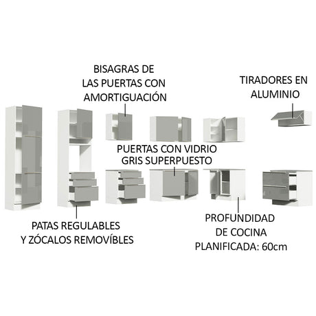 Combo completo de Cocina 320cm Blanco/Gris Lux Madesa 0...