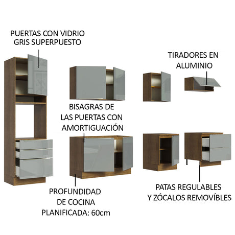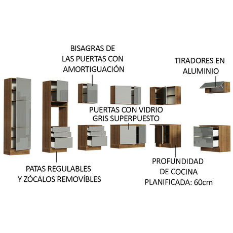Combo completo de Cocina 320cm Marrón/Gris Lux Madesa 0...