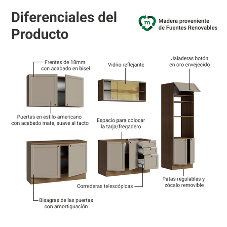 Combo completo de Cocina 270 cm Marrón/Crema Vik Madesa...