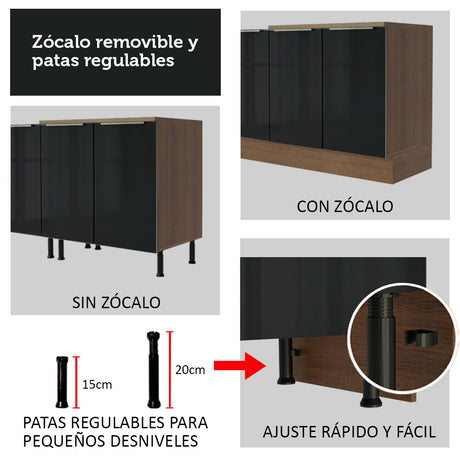 Combo completo de Cocina Esquinero 546cm Marrón/Negro L...