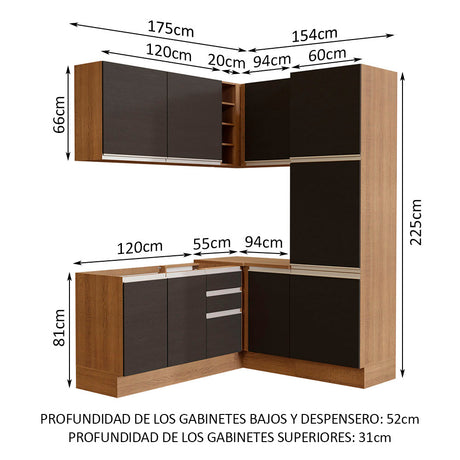 Combo completo de Cocina 330cm Marrón Glamy Madesa 03