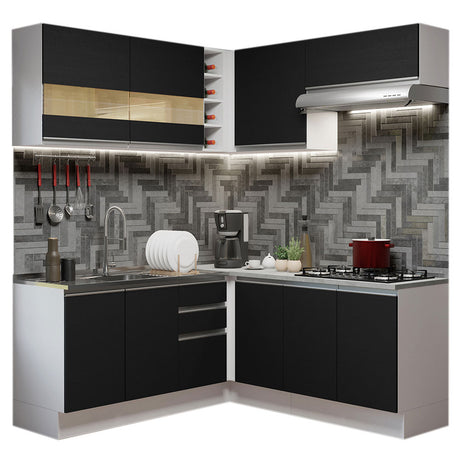 Combo completo de Cocina Esquinera 389cm Blanco/Negro A...