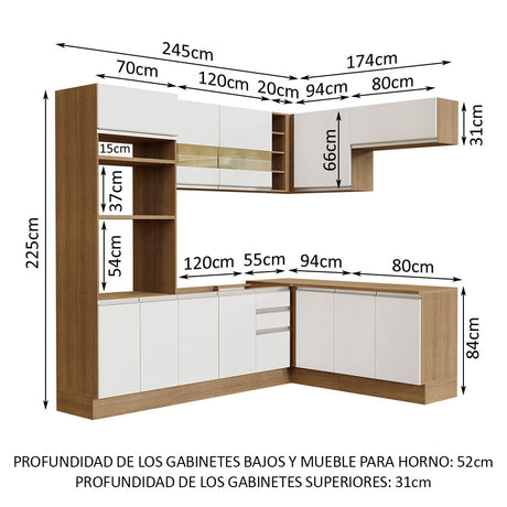 Combo completo de Cocina Esquinera 419cm Marrón/Blanco ...