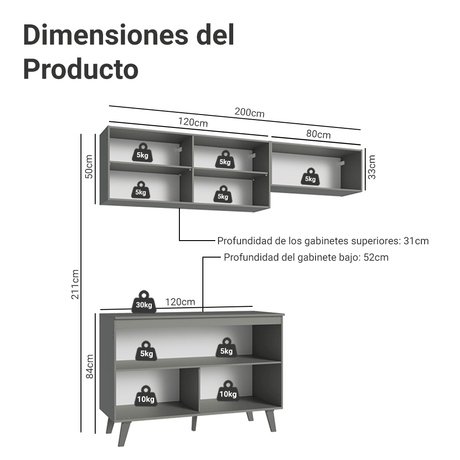 Combo de Cocina 200cm Gris Nice Madesa 01