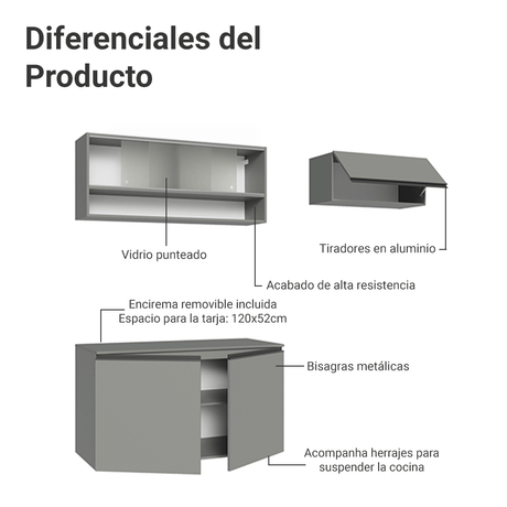 Combo de Cocina Flotante 200cm Gris Nice Madesa 07