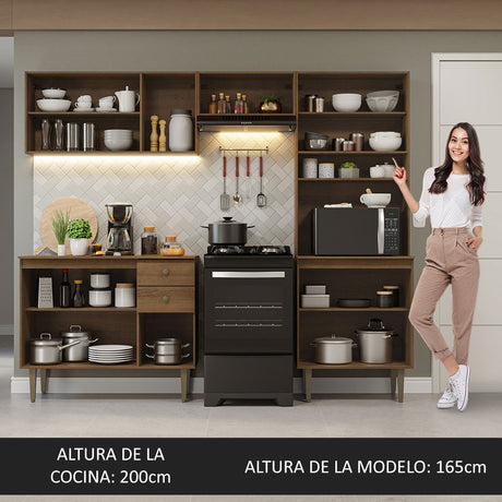 Combo de Cocina 169cm Marrón/Negro Emilly Winter Madesa...