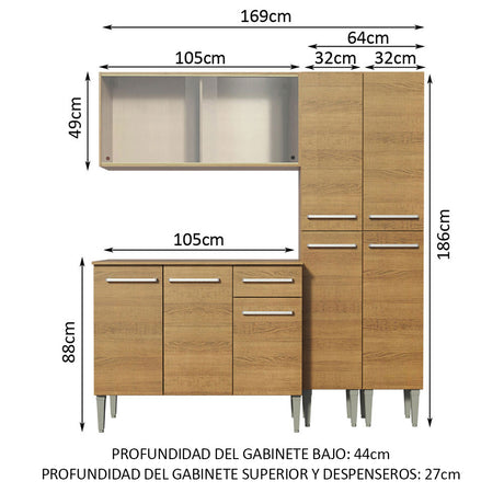 Combo de Cocina 169cm Emilly Fly Madesa 05 - Marrón