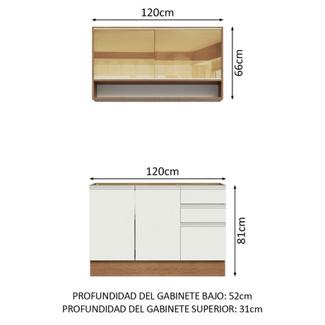Combo de Cocina 120cm Marrón/Blanco Glamy Madesa 02