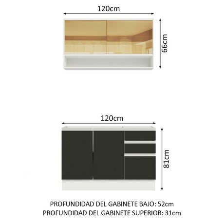Combo de Cocina 120cm Glamy Madesa 02 Blanco/Negro
