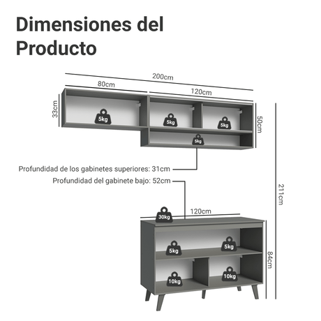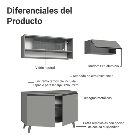 Combo de Cocina 200cm Gris Nice Madesa 10