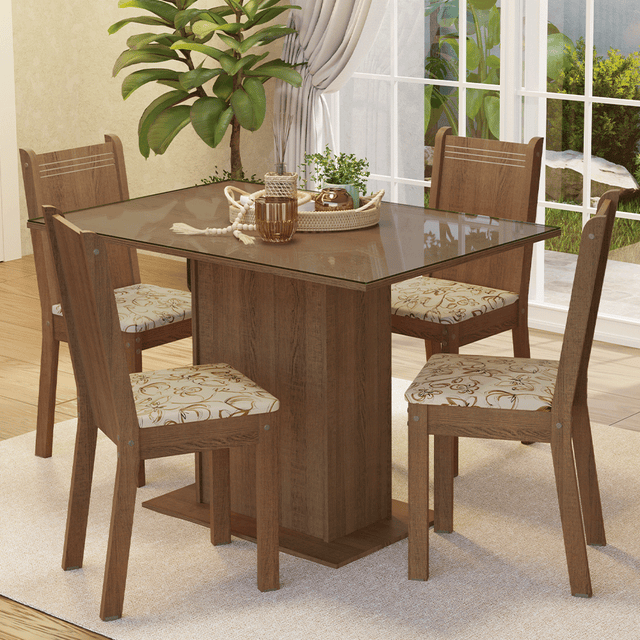 Conjunto Comedor Mesa Mesada de Vidro 4 Sillas Marrón/Lírio Bege Camélia Madesa