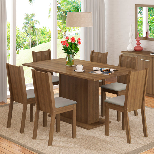 Juego de Comedor Megan Mesa con Tapa y 6 Sillas Marrón/Sintético Beige
