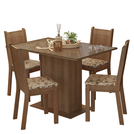 Conjunto Comedor Mesa Mesada de Vidro 4 Sillas Marrón/H...