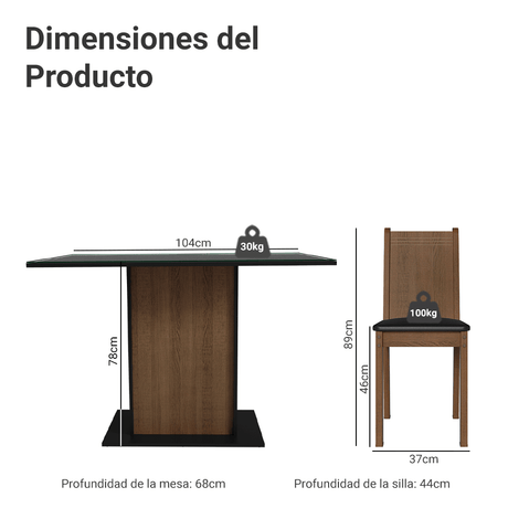 Mesa de Comedor con Mesa y 4 Sillas Ruby Madesa MN 01