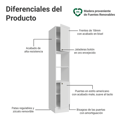 Despensero 40cm 2 Puertas e 2 Nichos Blanco aterciopela...