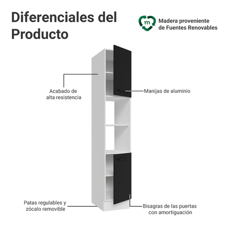 Despensero 40cm 2 Puertas e 2 Nichos Blanco/Negro Lux M...