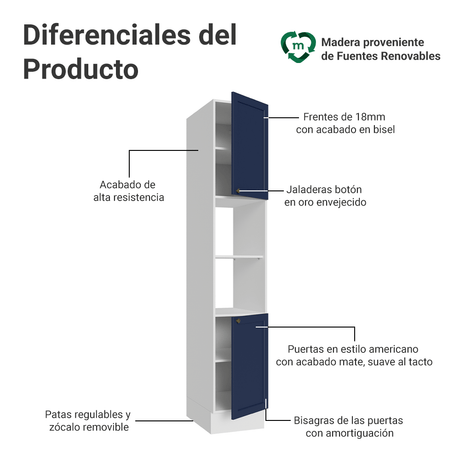Despensero 40 x 60 cm 2 Puertas e 2 Nichos Blanco/Azul ...