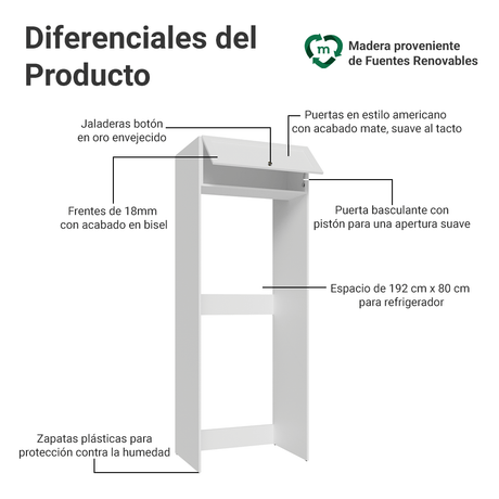 Mueble para Heladera 1 Puerta Rebatible Blanco Vik Made...