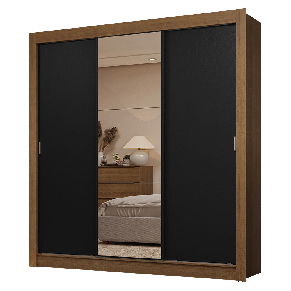 Placard Matrimonial 3 Puertas Corredizas con Espejo 2 Cajones Marrón/Negro Sublime
