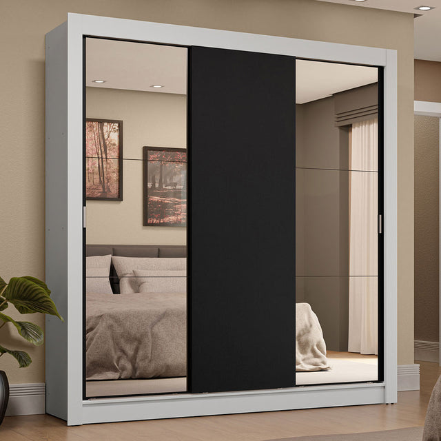 Placard Matrimonial 3 Puertas Corredizas con Espejos 4 Cajones Blanco/Negro Sublime Plus