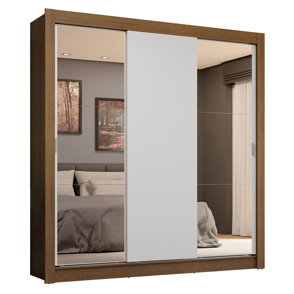 Placard Matrimonial 3 Puertas Corredizas con Espejos 4 Cajones Marrón/Blanco Sublime Plus