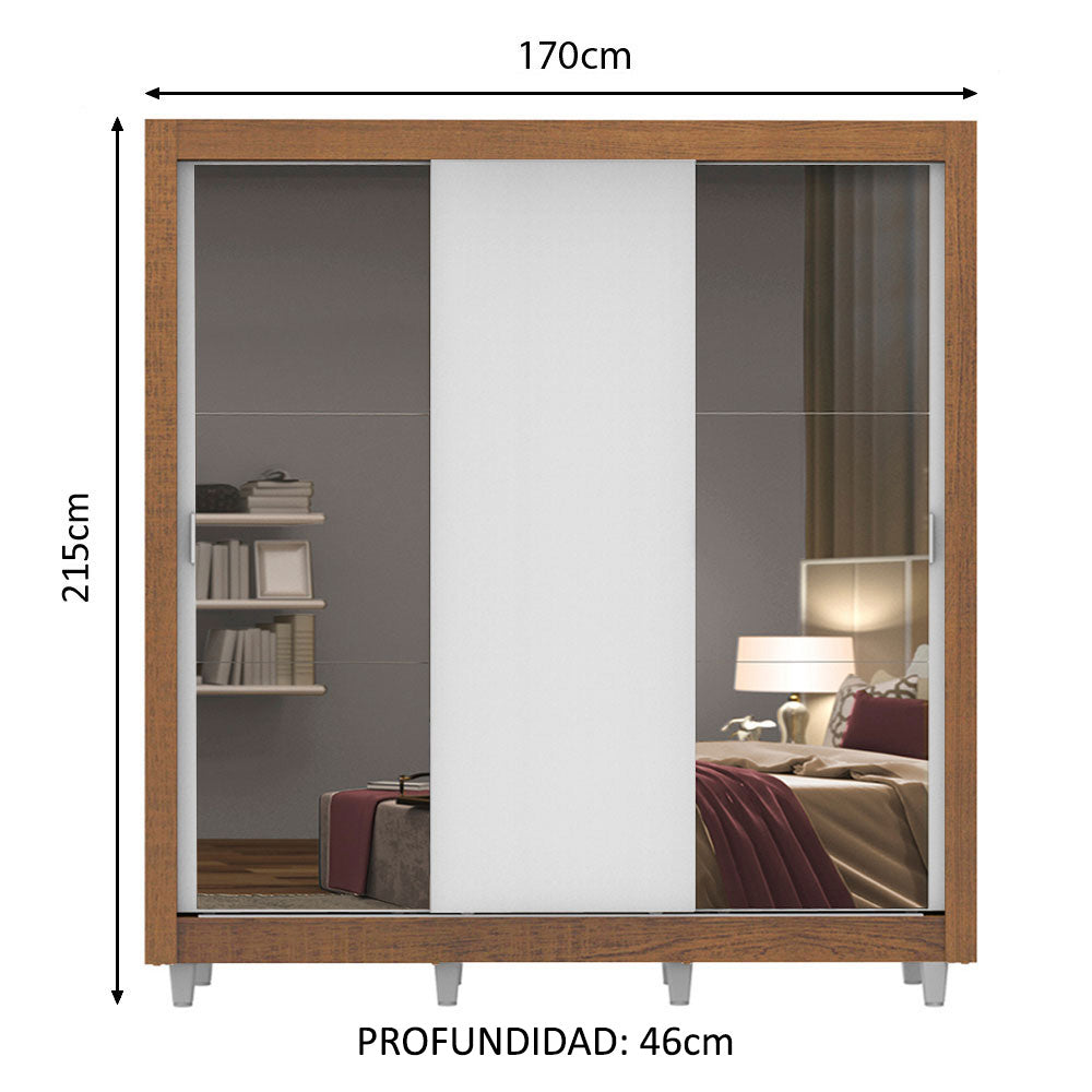 Placard Matrimonial 3 Puertas Corredizas con Espejos con Patas Marrón/Blanco Monaco