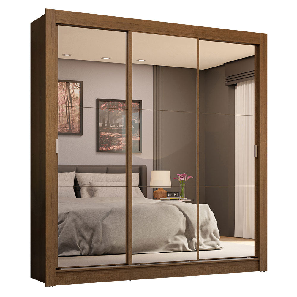 Placard Matrimonial 3 Puertas Corredizas de Espejo 4 Cajones Marrón Sublime Plus